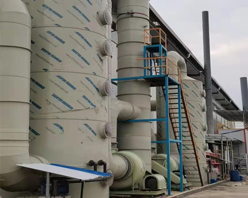 在廢氣處理工程中必不可少的設備有兩種,一種是通風設備,另一種是廢氣凈化設備。而通風設備就是本公司主營的玻璃鋼離心風機,廢氣凈化設備則根據具體的需求進行選擇,如下圖中的PP凈化塔就是比較常見的廢氣凈化裝置。除了凈化塔之外,活性炭吸附塔、等離子分解裝置、除臭裝置等都是用來凈化廢氣的。在使用時玻璃鋼離心風機通過管道與這些設備連接在一起。下圖是玻璃鋼離心風機與廢氣處理裝置的使用圖展示。
